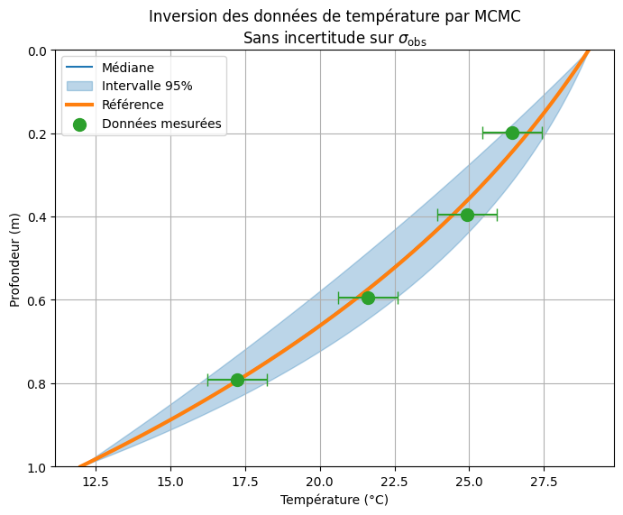 We then compile this temperature and pressure data with a Bayesian inversion in order to know the parameters of the medium. The idea of the algorithm, called a Markov chain, is as follows: